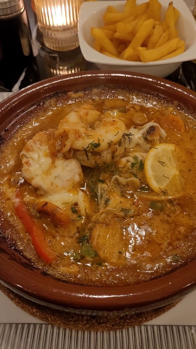 Erg sympathieke uitbater ! Heel lekkere tajine (kip) maar niet vragen als je grote honger hebt en snel wil eten want deze dish is kokend heet (pruttelend op tafel ) magisch lekker maar slow diner (laagje gesmolten kaas vanboven dus als je dat niet graag eet best bij vermelden !) , frietjes zijn echt perfect gebakken maar mij overbodig want de tajine komt met pita broodjes , mijn man at de mixed grill (lam) Dat kwam met verschillende sausjes en groenten ! Niét prijzig , sympathieke bediening en erg lekker , we gaan zeker terug !!!!